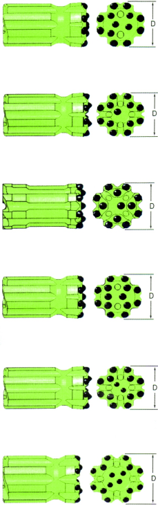 This type of bit is well known for its wear resistance on soft to medium-hard rock formations (between 55 Mpa to 165 Mpa compressive strength). Featuring spherical tungsten carbide inserts that is known to have strong configuration against carbide fracture. Recommended for eliminating hole deviation. Used in benching and long hole drilling.